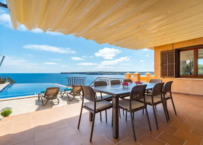 הוילה Ses Penyes Rotges הלצד חוף הים זהו מקום מדהים כדי לעצור ב-Portopetro. בוילה זו ישנה מרפסת.